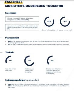 Toch blijkt uit dit onderzoek dat er wel andere behoeftes zijn: ruim een kwart is kritischer geworden over het reizen naar werk, waarvan het merendeel vrouwen. Werknemers willen meer mobiliteitsmogelijkheden aangeboden krijgen vanuit de werkgever (57%). Velen zijn bereid om de auto – nu het meest gebruikte vervoersmiddel (75%) – te vervangen door de elektrische fiets, mits ze het krijgen van de werkgever.