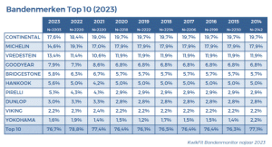 Wat hierbij opvalt, is dat zomerbanden vooral plaats maken voor all season-banden, die nu goed zijn voor 25,5 procent van het totaal aantal gemonteerde personenautobanden in Nederland. Een stijging van 2,3 procent ten opzichte van vorig jaar. Het aantal mensen dat zomers doorrijdt op winterbanden daalde daarentegen naar 4,7 procent. Deze bevindingen weerspiegelen een gestage verschuiving op het gebied van wegdekaandelen, waarbij all season-banden terrein winnen ten koste van zomer- en winterbanden.