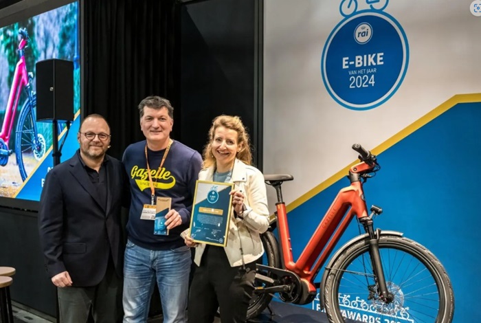 De Gazelle Eclipse C380 is tijdens de aftrap van het fietsseizoen in de Brabanthallen uitgeroepen tot E-bike van het Jaar 2024