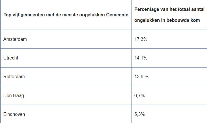Hoewel Zuid-Hollanders de meeste brokken maken, vindt het merendeel van de ongelukken plaats in de provincie Noord-Holland en dan vooral in Amsterdam. Opmerkelijke is dat na Amsterdam Utrecht volgt als gemeente waar de meeste schade wordt gereden. De meeste ongelukken vinden plaats binnen de bebouwde kom, gevolgd door autosnelwegen en n-wegen. Van de autosnelwegen gaat het vooral over de A2, gevolgd door de A15 en de A16.
