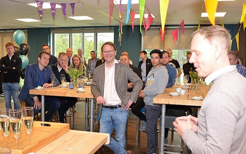 Morten Strand (midden) tijdens de feestelijke opening van het nieuwe ABAX-hoofdkantoor in Diemen