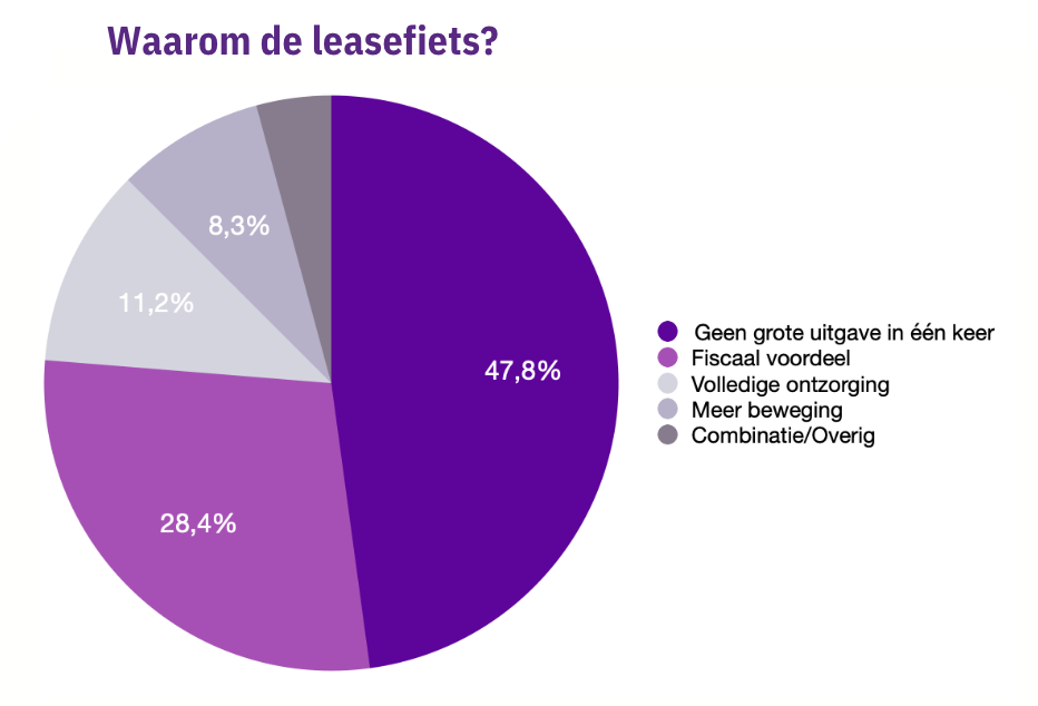 “We hebben het bedrijf echt opgestart vanuit de fiets en de behoefte van de werkgever en de werknemer: het moet zo makkelijk mogelijk worden gemaakt om op de fiets te stappen. Wat ook helpt is onze samenwerking met 1500 fietswinkels door het hele land. Dit servicenetwerk is enorm belangrijk. Je kan wel een e-bike online aanschaffen, maar elektrische fietsen hebben nu eenmaal onderhoud nodig. Onze ervaring leert dat men bij fietsen veel waarde hecht aan een lokaal servicepunt dichtbij. Bij de leasefiets zijn service & verzekering inclusief.”