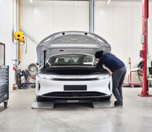 Herstelcapaciteit. Dat is tegenwoordig het begrip waar het om draait richting klanten, zegt Reinderts. Dus niet om het aantal stenen gebouwen. Technologie kan helpen die capaciteit mooi te spreiden over het hele netwerk. Of de elektrische auto nog grote impact heeft op de organisatie? Reinderts: “We herstellen nu ongeveer 100.000 EV’s per jaar. We waren de eersten die Tesla’s deden. Voor ons zijn het wat dat betreft ‘gewone’ auto’s geworden. Al streven we nog naar meer tariefdifferentiatie voor complexe reparatie van veiligheidskritische schades, zoals omschreven in de BOVAG-Plusnorm. Het is nog even de vraag hoe de nieuwe, Aziatische modellen de hele aftersales gaan vormgeven. Maar bij ons gaat het voornamelijk om herstelcapaciteit en hoe die zeker te stellen ook na 2030.”