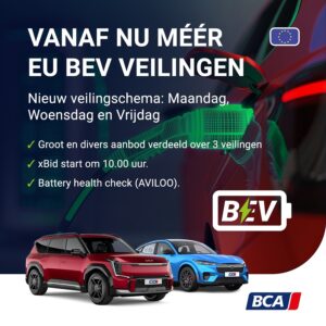 Zo is er voor iedere elektrisch voertuig wel een markt te vinden. De kunst is om die markt te vinden. Daar komt het enorme Europese netwerk van BCA goed van pas. Vrijsen ziet ook de speciale EV-veilingen, waar BCA al enige tijd geleden voor heeft gekozen, zijn vruchten afwerpen. Het is nog altijd speerpunt in het EV-veilingbeleid van BCA. Ook in de eigen veilingen van leasemaatschappijen, die BCA faciliteert, lopen er EV-campagnes. Want ook voor EV’s geldt dat Nederlandse voertuigen in het buitenland in trek zijn, vanwege het doorgaans goede onderhoud van de leasemaatschappijen hier in den lande. Maar ook vanwege onze goede wegen. Vrijsen: “Je ziet in de Europese markt partijen ontstaan die gespecialiseerd zijn in elektrische voertuigen. Die kunnen gericht op onze veilingen terecht. En dat zie je uiteindelijk terug in de opbrengsten die we voor onze klanten realiseren.”