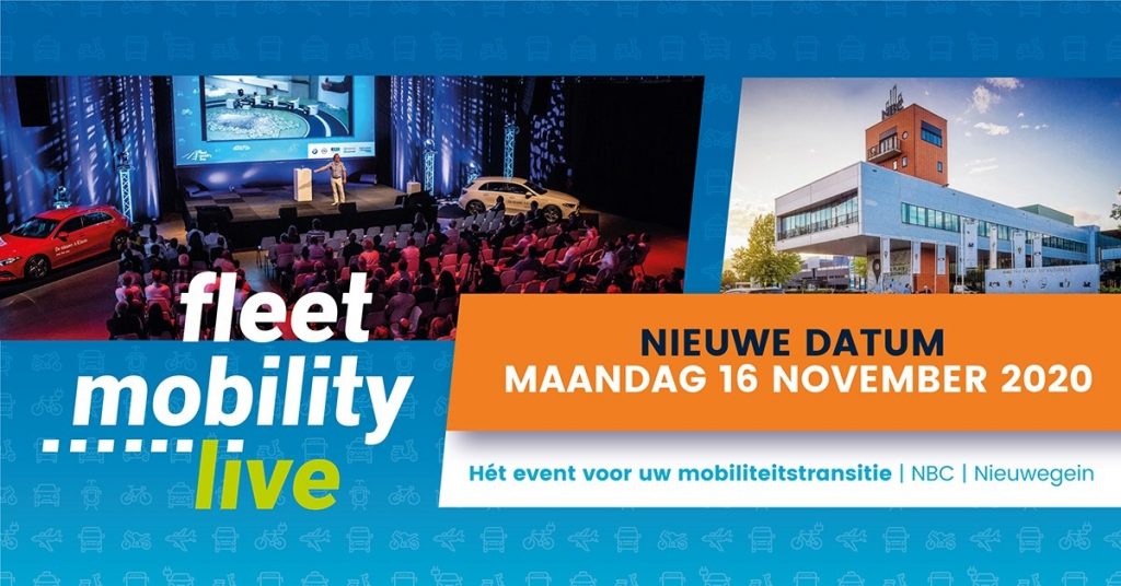 dinsdag 24 maart, 2020Niet 12 mei maar op maandag 16 november vindt het Fleet Mobility Live event nu plaats. Reden van uitstel zijn de nieuwe coronamaatregelen die alle events – ook met minder dan 100 personen – verbiedt tot 1 juni.