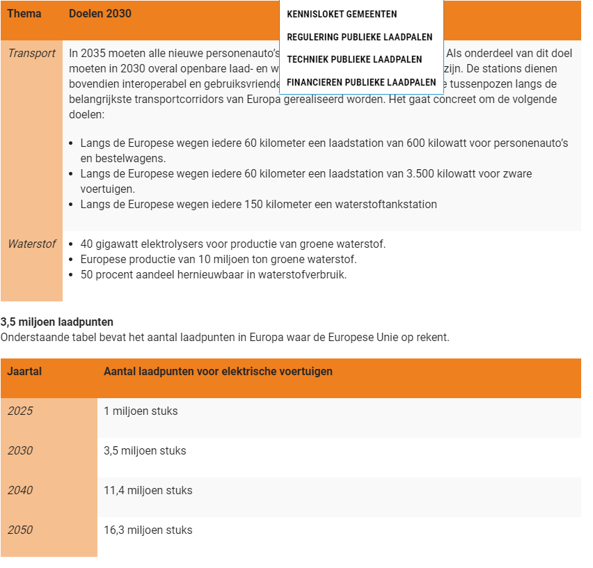Onderstaande tabel bevat de belangrijkste doelen voor mobiliteit en transport.