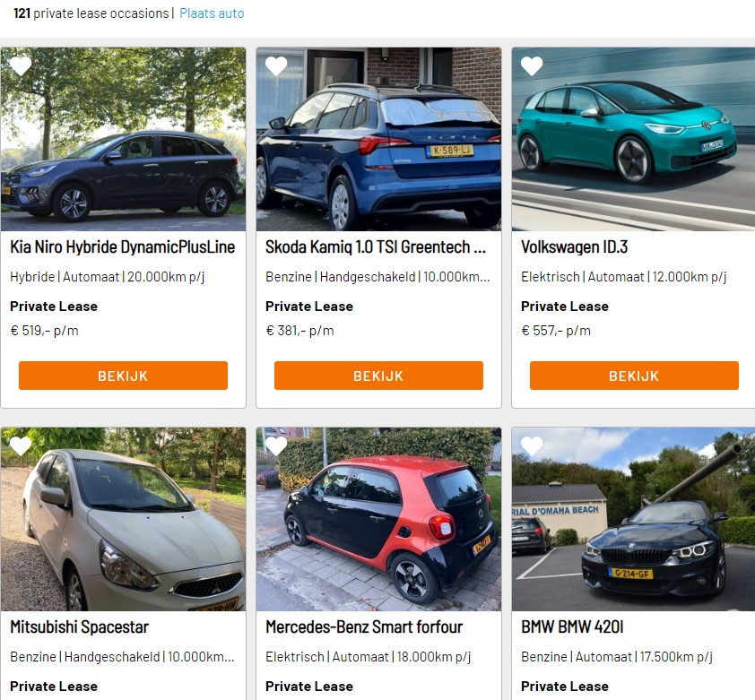 Momenteel staan er zo’n 121 private leasecontravten ter overname