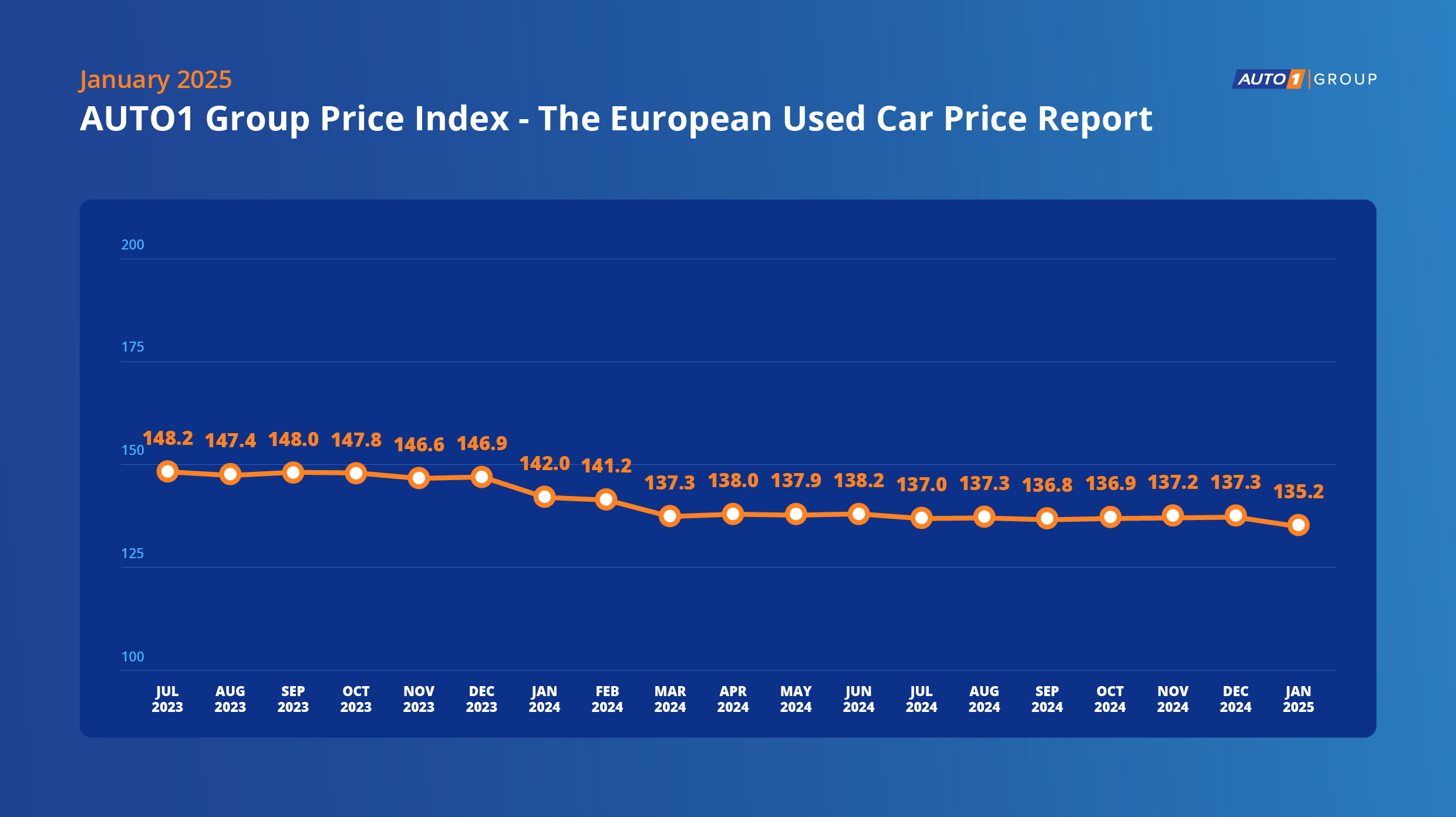 Het jaar 2025 begint met een merkbare daling van de prijzen van gebruikte auto’s, blijkt uit de nieuwste AUTO1 Group Price Index, het Europese rapport over de prijzen van tweedehands auto’s.