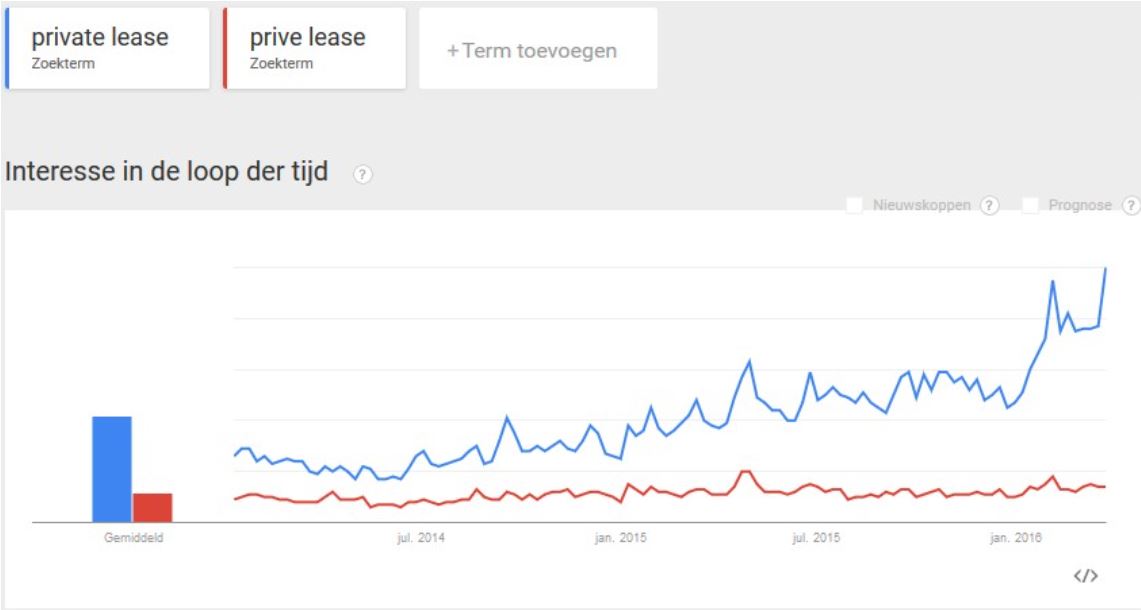 Duidelijk is ook te zien dat de markt de term ‘private lease’ heeft omarmd in tegenstelling tot privélease. Die eerste term komt ook het meeste terug in commerciële uitingen. “En dat is te zien in het zoekgedrag van de consument”.