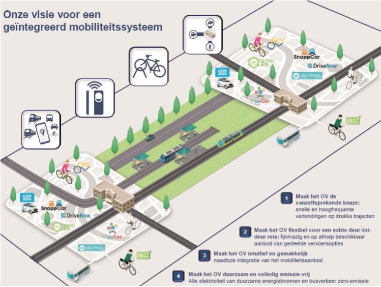 Voor jaarlijks een miljard euro kan het openbaar vervoer flexibel worden ingericht met deur tot deur oplossingen van trein en lightrailverbindingen tot diverse vormen van deelvervoer zoals OV-fiets, beltaxis en deelauto’s. De reiziger is daarbij volledig in control. Aldus het toekomstbeeld van vijf OV-bedrijven onlangs gepresenteerd.