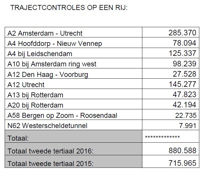 dinsdag 20 september, 2016In de maanden mei, juni, juli en augustus van 2016 zijn zo’n 3,4 miljoen verkeersovertredingen geconstateerd. Dat is fors meer dan in dezelfde periode in 2015, toen werden er 2.7 miljoen boetes opgelegd.
