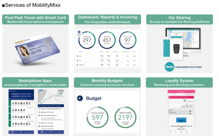 Volgens Hitachi is Nederland wereldwijd een van de sterkst ontwikkelde markten op het gebied van innovatieve mobiliteitsdiensten (MaaS en Smart Mobility). Mobility Mixx zien ze als een frontrunner in het bieden van dergelijke dienstverlening: via een ‘one stop shop’ gebruikers toegang geven tot een grote variëteit aan mobiliteitsdiensten. Naast autoleasing onder andere ook: openbaar vervoer, deelauto’s en deelscooters. Reizigers plannen, boeken, betalen en wikkelen de administratie en fiscale aspecten af via één kanaal. Bovendien: “Mobility Mixx ondersteunt bedrijven en instellingen in het realiseren van kostenreductie én vergroening door mobiliteitsbudgetten te bieden, die in combinatie met slimme loyaliteitsprogramma’s het reisgedrag substantieel positief beïnvloeden”, aldus Hitachi Capital.