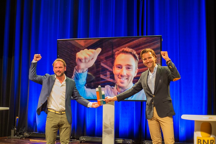 Niels van Geenhuizen, Global Leader Sustainable Solutions bij Arcadis (op scherm) wint de Spitsbreker Award 2020